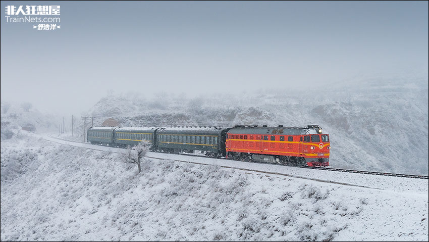 2023年2月。暴雪中,“橘客”牵引8171次(太原-沁县)列车接近北田受车站。