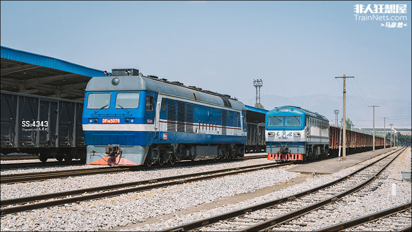 2023年4月21日,雨过铺站,蒙自北站2调DF8B-5079与终到的30037次并排停靠,高大的准轨机车与矮小的米轨机车看上去有一种反差萌。