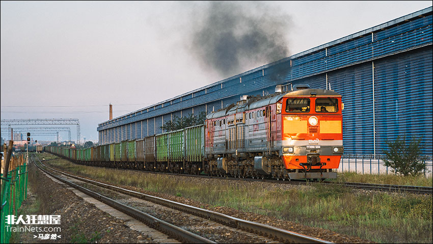 2023年7月30日,滨洲线,俄铁2TE10MK-3354机车牵引返回俄罗斯的国际联运列车由满洲里站西场发车,开往满洲里站边检场。
