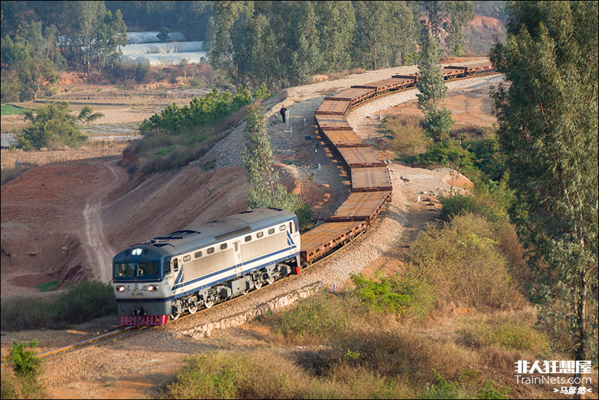 2023年2月12日,昆河线,30032次平车大列开下玉林山展线,接近七孔桥。