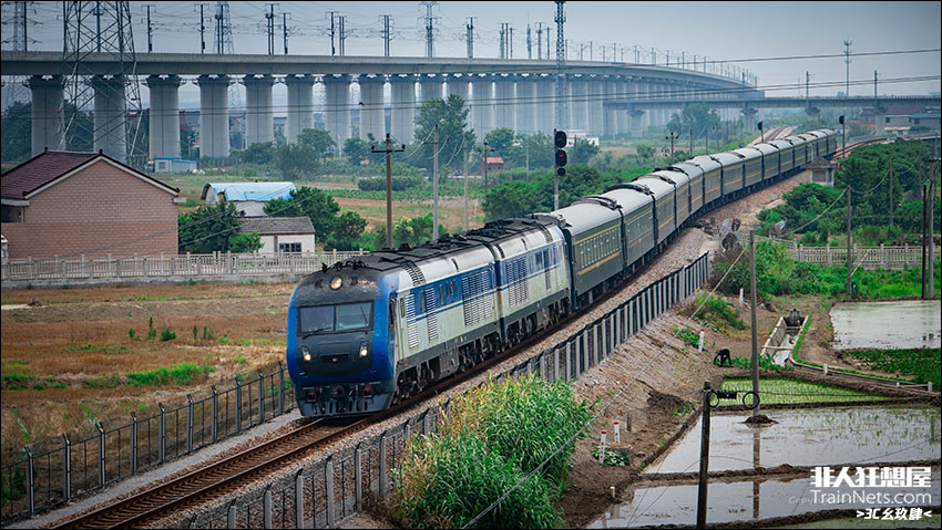 2023年6月15日。新长线。上局徐段DF11G-0135/6牵引K248次(扬州-成都西)列车经过西北联络线由宁启线转入新长线。