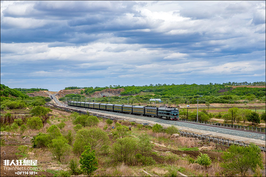 2023年5月,黑龙江黑河,北黑铁路,“西瓜”牵引K1010次列车(黑河-大连北)接近锦河站。这一段北黑线是已经完成提速改造的新线,随着大连厂给北黑线的新车即将到位,北黑线“西瓜”客列的一代经典也即将走向终结。