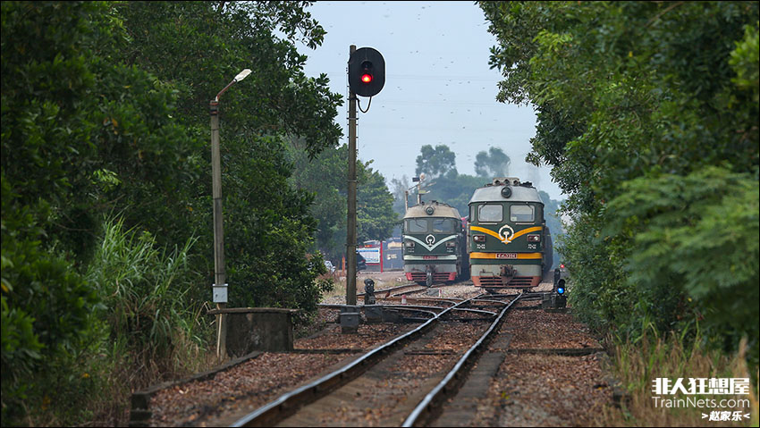 2023年10月1日,阳阳铁路阳江港站。两台东风4型机车牵引列车终到后等待转线回库。