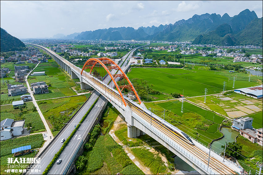 2022年8月16日。参加贵南联调联试的CR400BF-J-0003检测车跨越兰海高速。