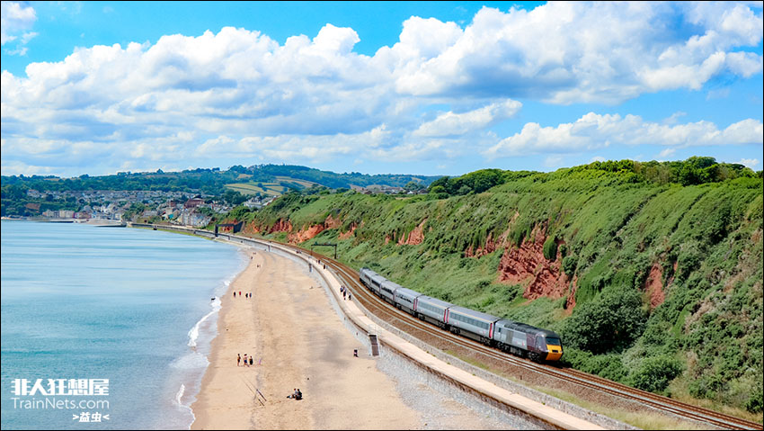 2023年8月。盛夏时节,Crosscountry Intercity125担当Plymouth至Glasgow Central的快车驶过Dawlish海滩。