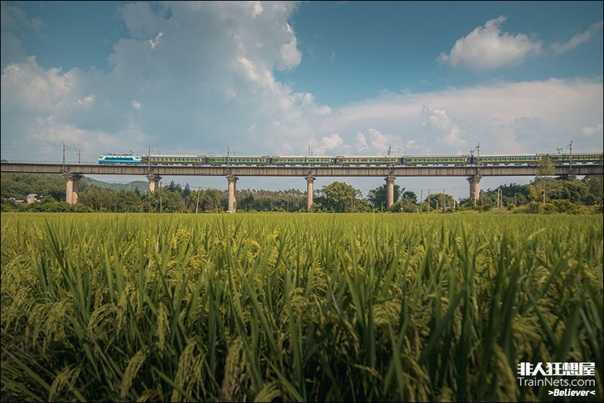 2023年9月30日,京广线。午后,SS8牵引客车K932次(深圳东-襄阳)通过飞来峡站,驶过一片即将成熟的稻田。