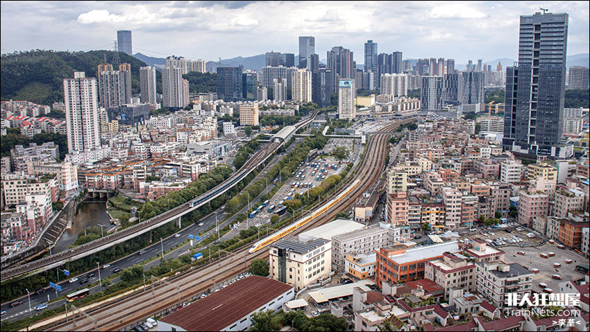 2023年7月,CRH2J-0205担当DJ1795次(广州东-深圳)通过深圳东站,与深圳地铁3号线竞速。