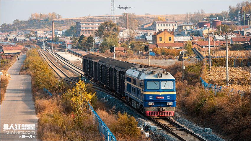 2023年10月。图佳线。哈局牡段DF8-0118牵引47011次列车行驶在石头站附近。