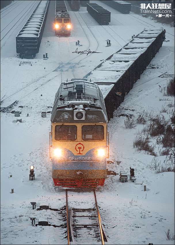 2023年11月。滨北线。呼兰站一调5088与二调4386执行调车作业。