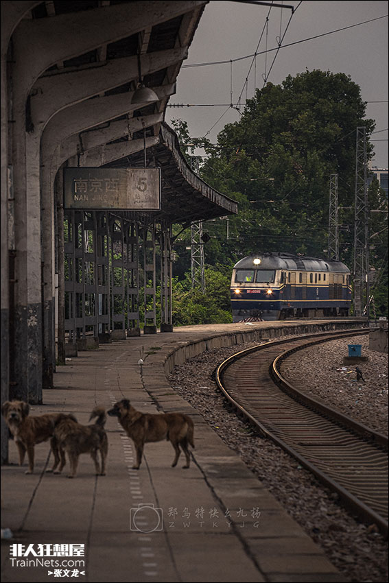 2023年10月。请站务人员做好接车准备,南京西站建成的第118年,关停的第11年 一天即将结束,上局宁东段DF11 0085正在进入南京西站四站台挂上车厢,准备开行0T7777次(南京西-南京-盐城),开启今晚的旅程,周围的小狗对于火车隆隆作响不以为然依旧行迹于站台之上。