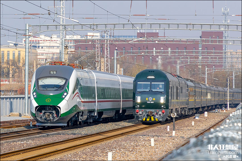 2023年12月5日,回送西局长编组“AD钙奶”动集的00124次在南信号交汇FXSY担当的T57次。