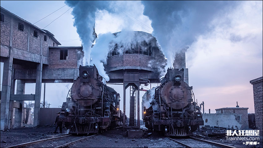 2019年1月24日。新疆哈密三道岭。正在东剥离站交接班作业的建设型蒸汽机车。