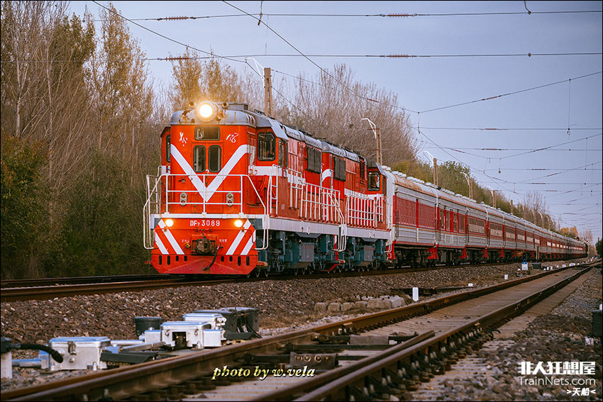 2023年11月。由于某个特别的原因,双机DF7牵引红皮宿营大列缓缓从后章村站发车,开回寨口,继续中断的西北环施工作业。