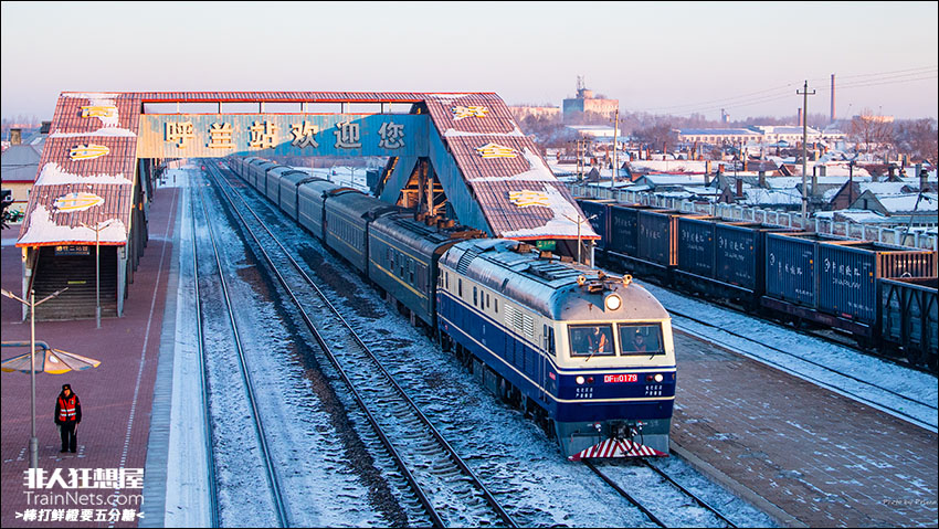 2023年1月18日,滨北线,哈局三段DF11-0119牵引K1528次列车(绥化-邯郸)通过呼兰站。