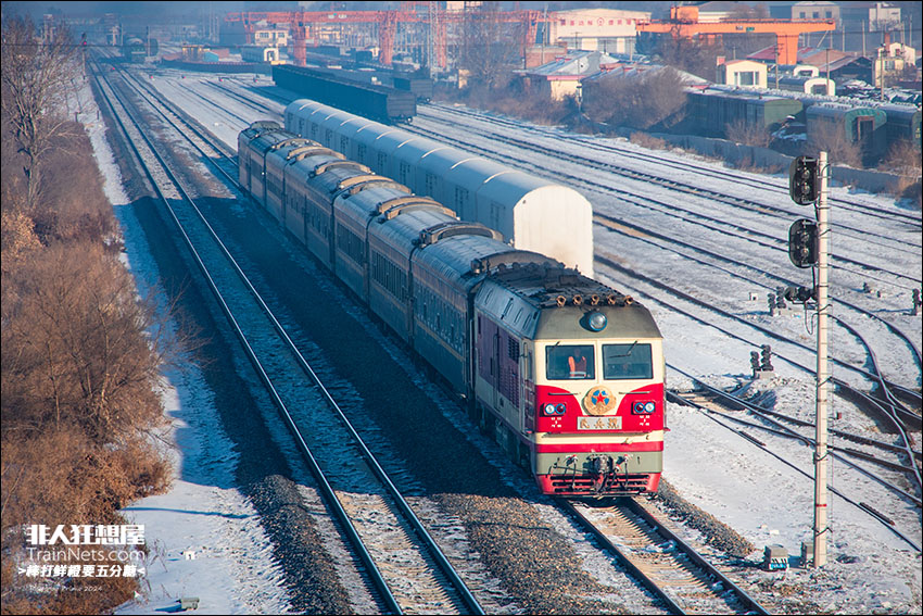 2024年1月18日,滨北线,哈局三段DF4D-3245“民兵号”牵引K7148次列车(北安-哈尔滨东)出呼兰站。