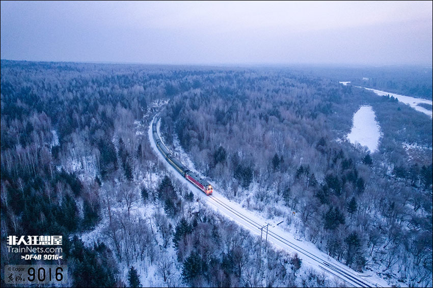 2023年12月3日,南乌铁路新青-五营区间,日出前的蓝调时分,6274次列车(乌依岭-佳木斯)运行在小兴安岭深处的林区中,前几天刚降下的大雪给林区增添了一份静谧。