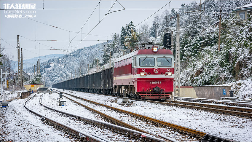 2024年1月,焦柳线,SS6B货列通过溪口镇站。