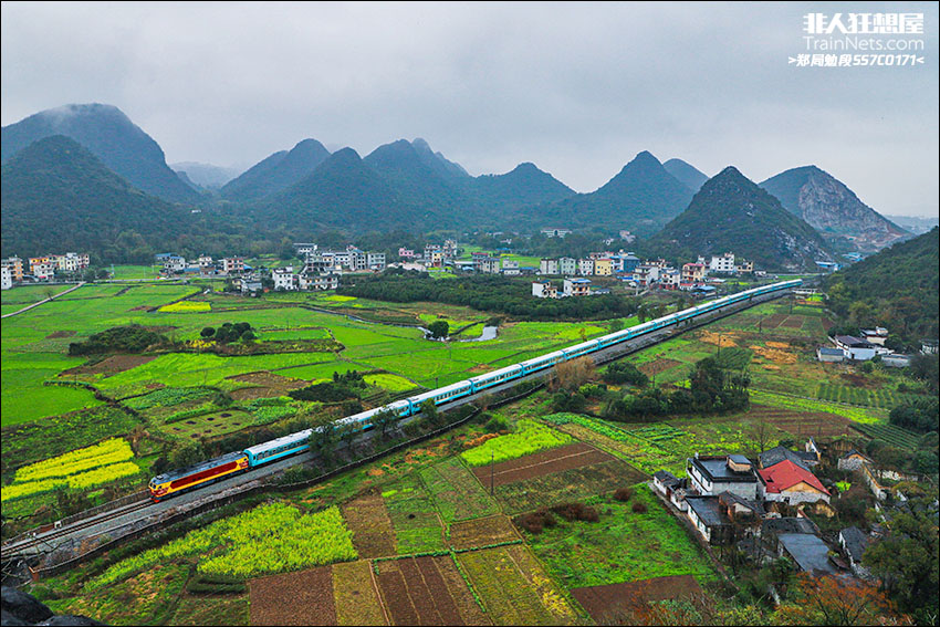 2024年3月16日。“什邡号”Y422次(桂林北-成都西)行驶在湘桂线严关乡-兴安区间。