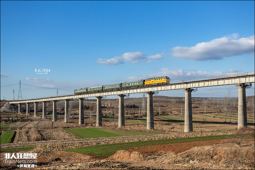 2023年11月30日。桃威线。DF4BK-2684牵引55037次检测列车通过曲水大桥,接近乳山车站。