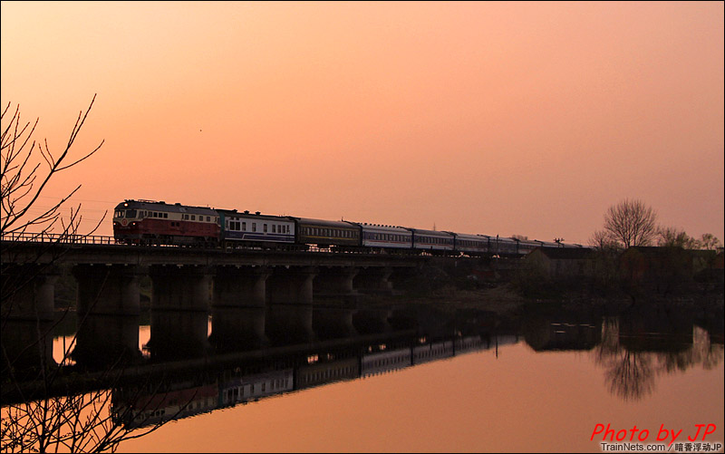 2015年5月。巢湖。DF4D牵引客车通过。