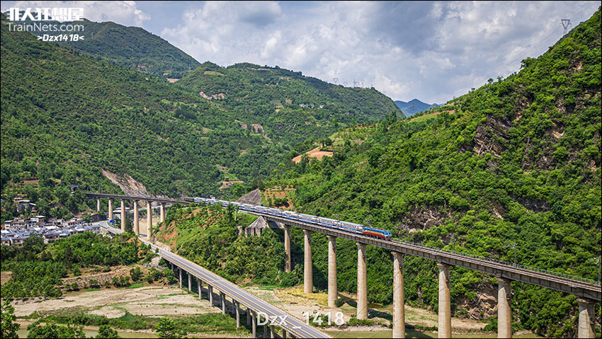 2023年5月11日,T7013次(宝鸡-安康)驶过西康铁路两河关大桥,穿行在秦岭深处。