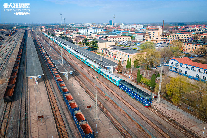 2024年3月24日。青岛。胶济线,济局青段DF4C牵引0Y153次成都局“什邡号”熊猫旅游专列车底蓝村站待发。自巴蜀腹地至滨海岛城,这是本车第二次载客运营,也是首次踏足广阔的齐鲁大地。