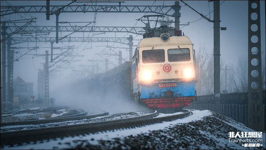 2024年2月21日,济南天降鹅毛大雪。京沪线,京局石段SS4G-0322牵引煤列跨过曹家圈黄河大桥,踏雪御风驶向桥南线路所。