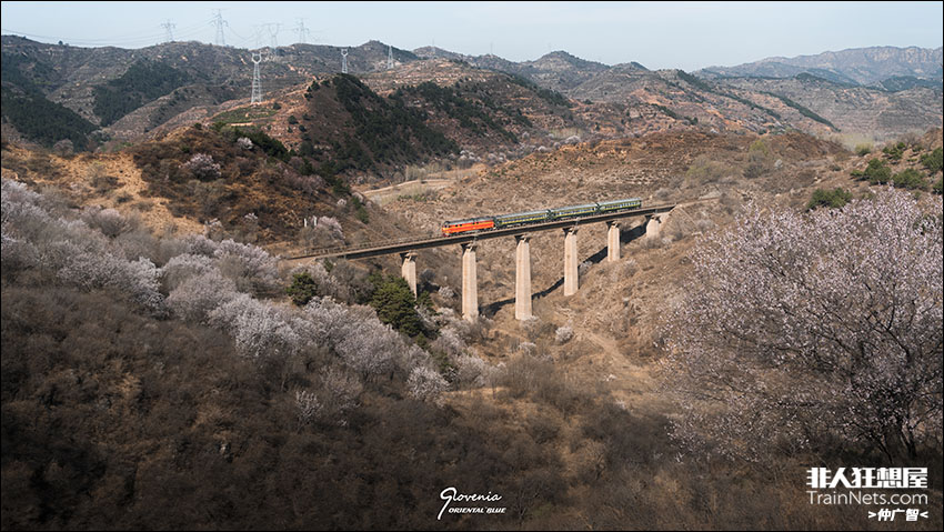 2024年4月13日,太焦线阳乐-社城区间,小票车8171次穿行在开满杏花的山谷之中。