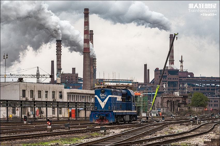 2023年2月12日,湖南娄底,涟钢自备车GK1C-0020正在进行调车作业。工厂上空弥散白汽,缭绕在水泥天里显得极为壮阔。