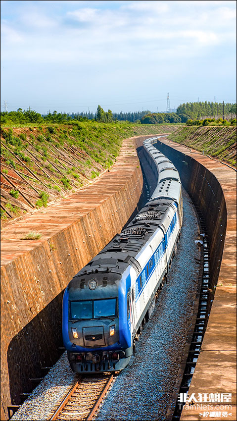 2021年11月23日,金秋送爽,Z386次列车(三亚-长春)沿湛海线下穿“菠萝的海”。