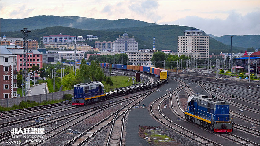 2023年7月末。盛夏傍晚的绥芬河南货场,佩有中国国徽的两台DF7C调机合张影吧!