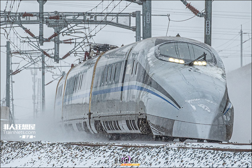 2024年2月21日。黄台联络线。 “青铜剑”CRH380AM冲破暴雪,确保着济南枢纽安全正点。