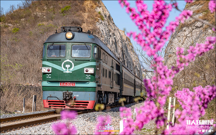2024年3月30日。马磁线。马磁线小票57127次驶出新市区乘降所,与盛开的梅花相映。
