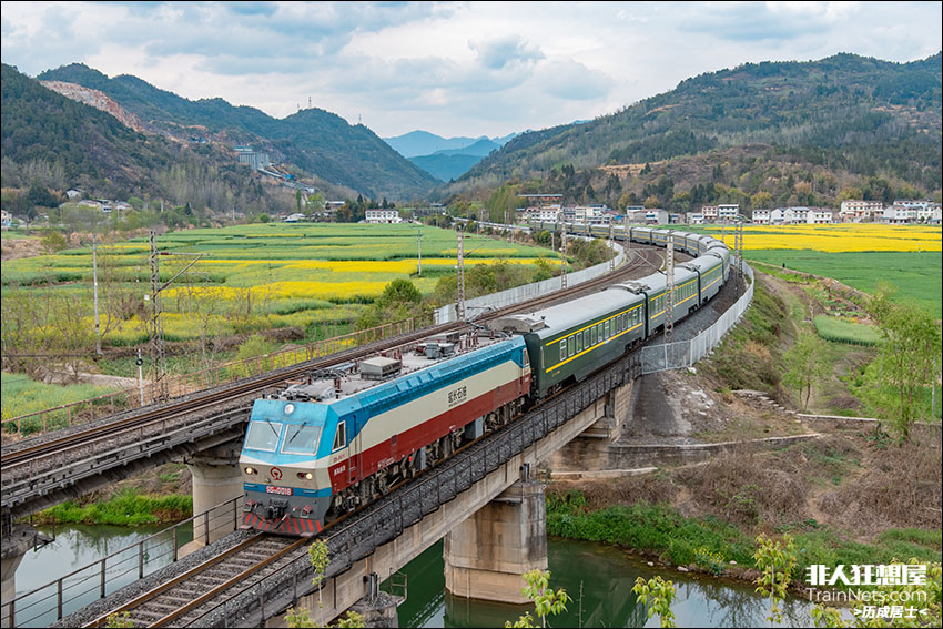 2024年3月,西局西段SS7D-0018牵引Z315次(北京西-呼和浩特)通过宝成线二郎庙弯道,SS7D短暂牵引直特列车的时光。