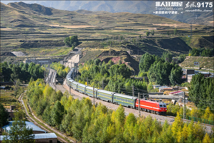 2023年9月9日。甘肃武威。兰新线。兰局兰段SS7E-0019牵引Z6205次列车(兰州-嘉峪关)驶出乌鞘岭特长隧道。