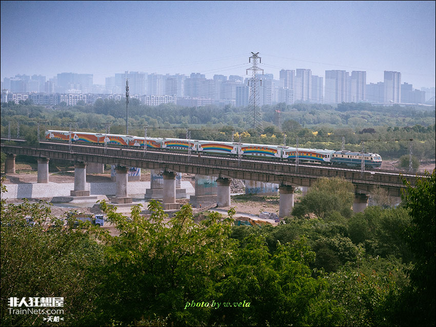 2024年5月,由 DF11-0419 牵引两组健康快车,通过全长830.1米的西长联络线永定河特大桥。一年一度的健康快车出发进入了最后阶段,经由西长-京广-永丰-柳广-京雄城际完成换向作业。