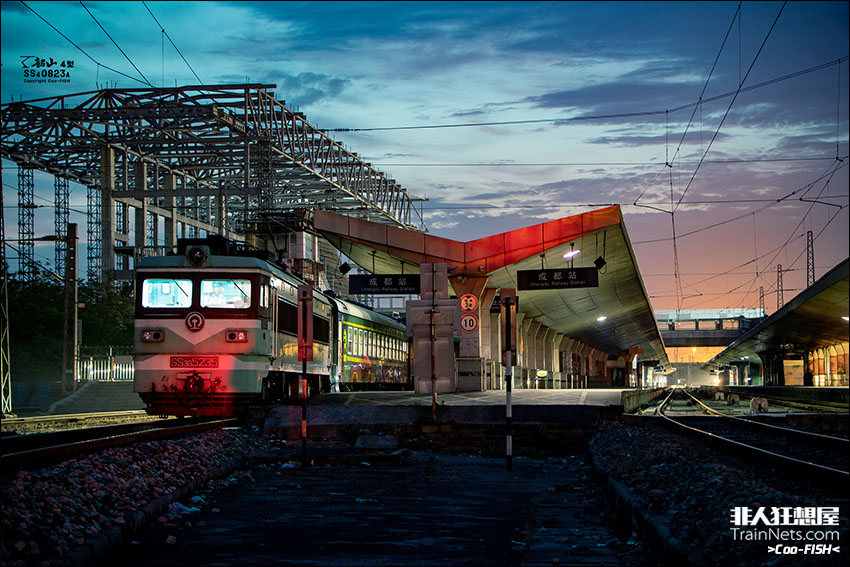 2024年5月14日清晨,SS3-5235牵引着05619次回送车底在成都站内沐浴着朝霞。