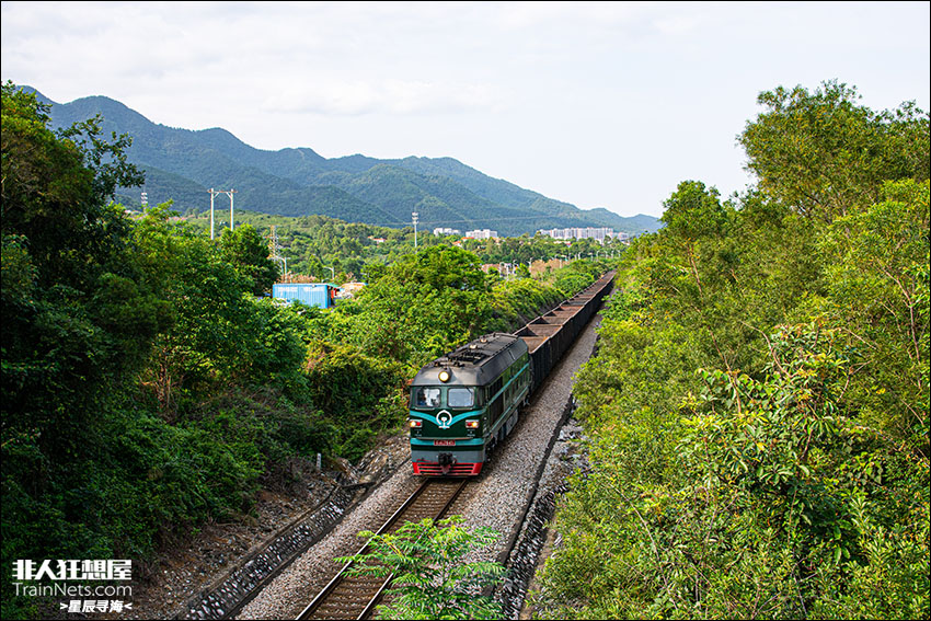 2023年4月30日。东风4牵引货列行驶在广茂线肇庆站附近。