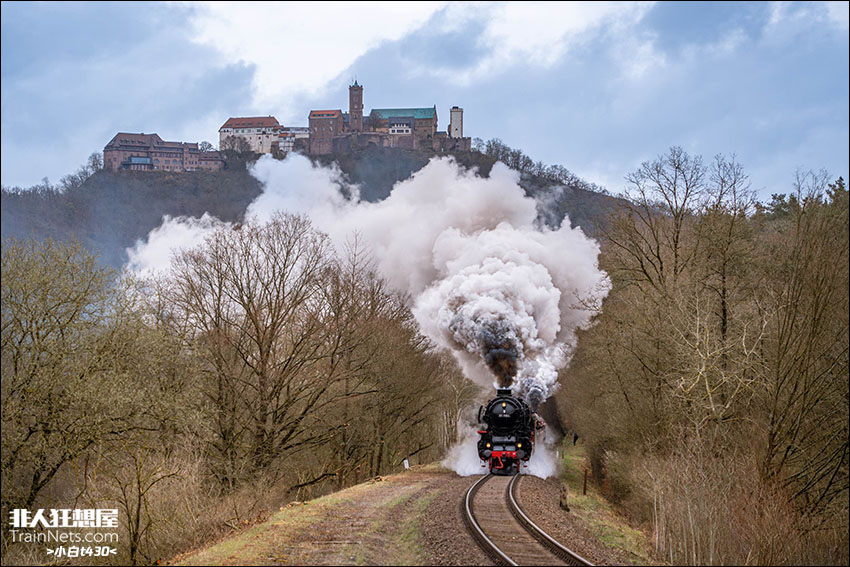 2024年3月,BR01-1104牵引旅客列车前往Arnstadt,01-1104自2023年维修完毕再度上线运营后经常用于各个特殊列车。山上为中世纪城堡瓦尔特堡,始建于1067年。