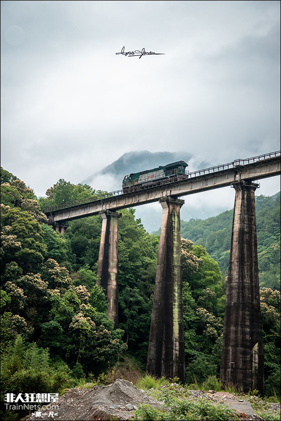 2024年5月。漳泉线。南局福段HXN5-0323单机通过感德站附近的大桥。