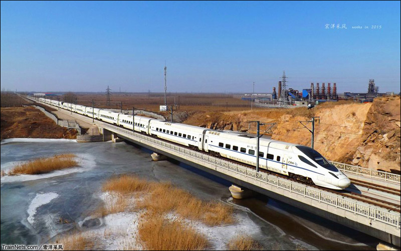 2015年3月4日。海城市腾鳌镇将军村,重联CRH5动车组通过。(图/宏洋采风)