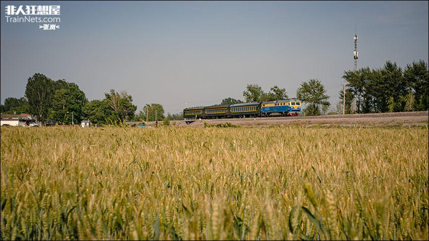 2024年5月28日,可以开窗的真绿皮末班6420次飞驰在京承线统军庄站外的麦田上。京承铁路小票车6419/6420次(通州西=承德)于2024年5月29日起更换为空调车底。