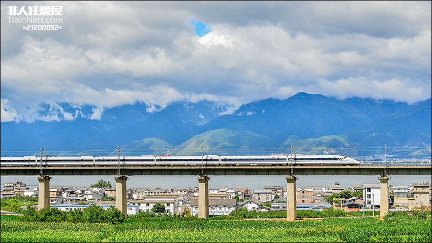2023年7月,大丽线,CRH2G快速驶过风景如画的洱海畔,远处的苍山清晰可见。