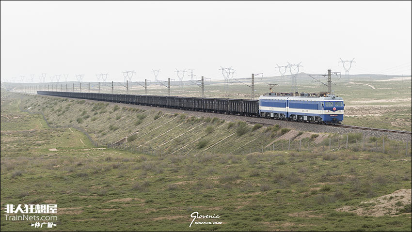 2024年6月9日,三新铁路都思图-黑龙井(废)区间,自备SS3B牵引敞车大列,往东乌线三北羊场站方向行驶。