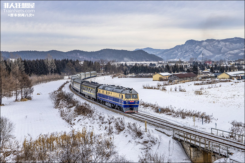2024年1月1日,雪后的小兴安岭,DF11-0401牵引K7128次(伊春-哈尔滨东)驶出柳树站。