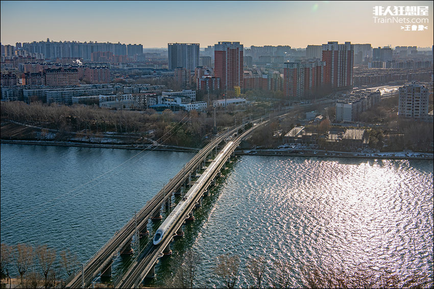 2024年1月。京哈线。CRH380BJ-0301动检驶出通州站。