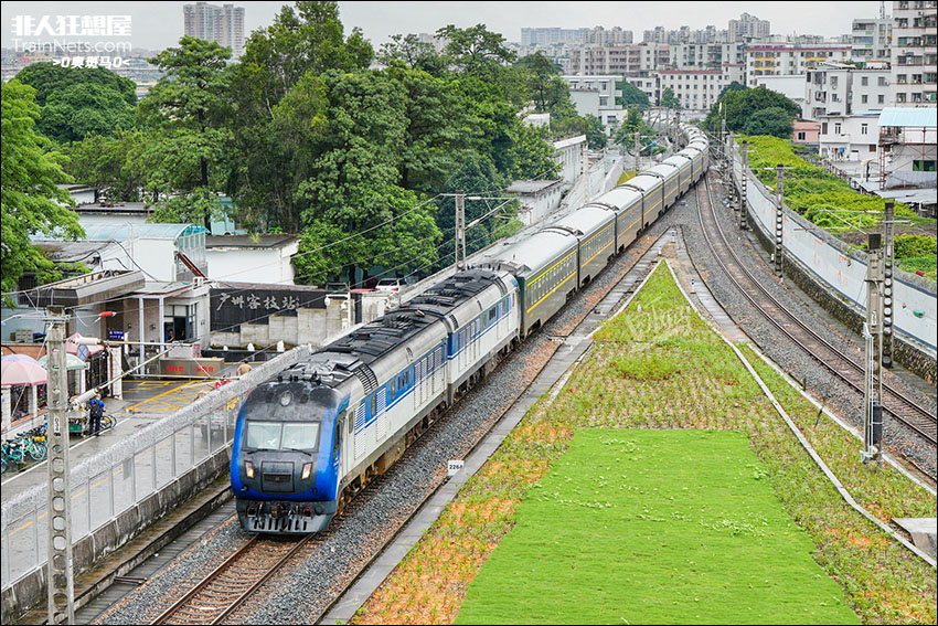 2024年6月8日。广东广州。DF11G牵引Z502次(三亚-北京西)穿行于雨后的广州城区,缓慢接近广州站。在6月15日调图后,Z502次等过海列车将改由广州白云站办客换挂,这标志着图定DF11G客车将告别广州火车站,此图中的场景也将消失。