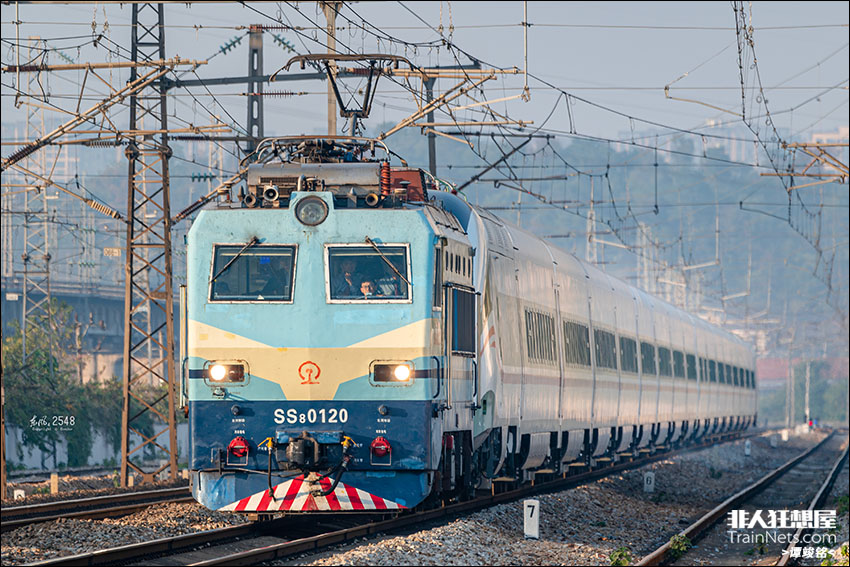 2023年12月。京广线。下午4时许,广铁首批第五组(最后一组)“AD钙”长编动集无火回送由SS8-0120担当,快速通过京广线周家坳,前往广州。广铁方灯SS8担当最后一组本务,为首批“AD钙”回送划上一个圆满的句号。