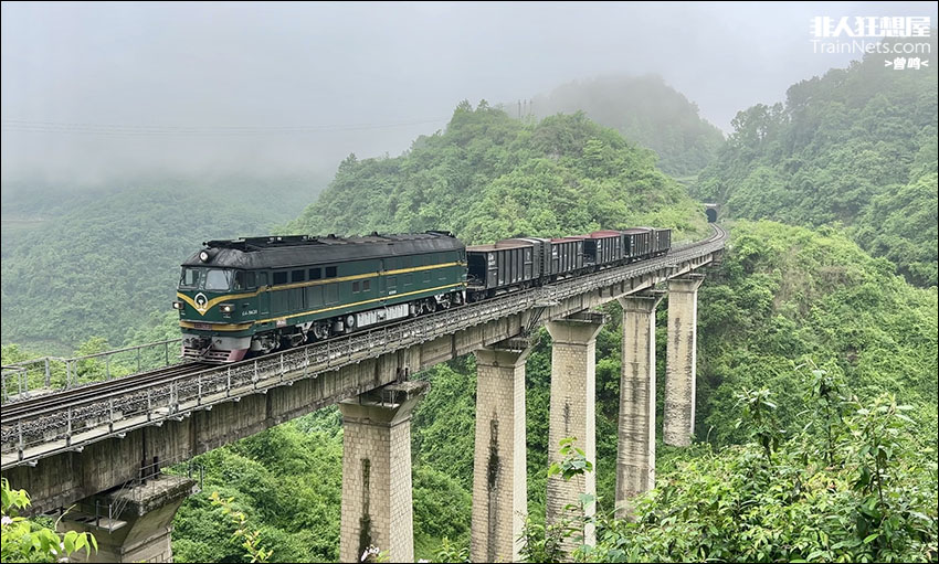 2024年5月。成局贵段东风4牵引路用石渣车运行在开阳支线上。