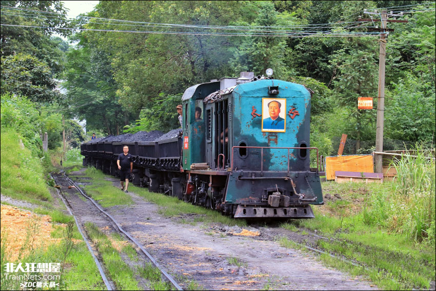 2024年6月30日,马田镇,太行型机车牵引窄轨车缓缓驶来,车身贴的伟人头像形成“新概念毛号”。
